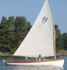- Seppo Narinen's Penni, a spacious, strip-planked Haven 12 ½, designed by Joel White - a centreboard gaff sloop, inspired by the Herreshoff 12 ½. It was just as well it was spacious, as Seppo had his extended family as crew - five in total!