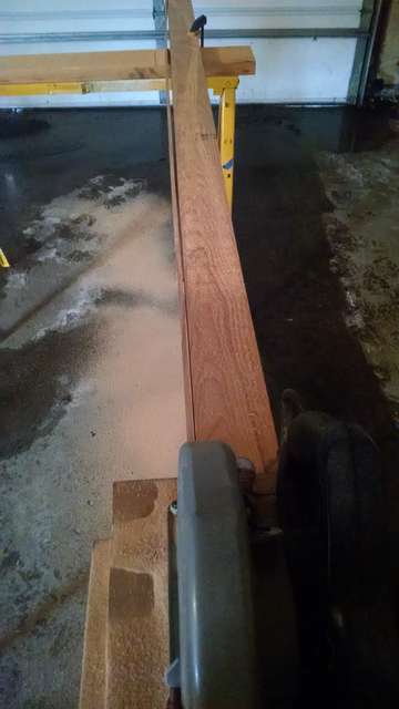 To use, throw that heavy, awkward 2x up on your sawhorses and clamp it down (or for smaller pieces it might be easier to screw through it and into the sawhorses out of the way of your cut). Plug your saw back in, position it at the end of the board with the fence against the edge of the board. Pull the trigger and slowly walk to the other end of the board with both hands on the saw's handles. Keep the fence against the 2x. When you're done, you'll have a beautiful new 16 foot long 1x2 (3/4 x 1_1/2 actual size). If your 2x has some imperfections like wavy grain, it might want to close up on the saw blade. Push a wooden wedge into the kerf behind the saw just enough to open it back up so the blade doesn't bind.