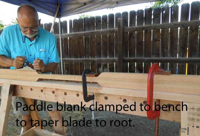 4. Redraw center lines on blade face and draw edge taper. Cut the edge taper with a hand plane. How you have the basic paddle shape, a hand plane and sand paper is all you need for here on out.