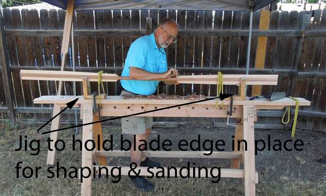 3. Mark up the blank with center lines, edge lines edge taper lines and end taper lines. Cut the taper on the blade faces. This can be done with: a hand plane, a power plane (my choice), a band saw (a little risky), or a jointer which produces the cleanest, most even face.