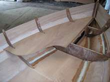 Below is another Pathfinder, this one built by Paul Groom. Note that this was his first significant boat build, well done that man. Note that the seat tops have to be fitted to the inside of the hull, the outboard motor well and the transom. The have to fit to the centre case brace, and still have a nice curved shape on the inside edge.