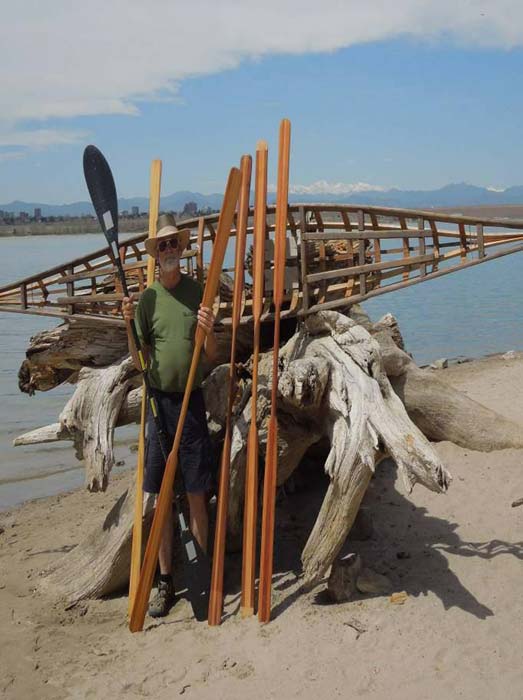 The frame of my skin-on-frame and some of the Greenland paddles made. |