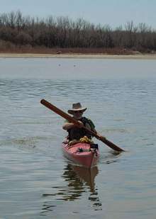 Initially the GP felt strange; it fluttered and didn't have the bite my euro paddle had. Paddles and oars flutter when the edges of the blades alternately shed vortices. That annoying flutter is easily reduced by proper technique whether it's a Greenland paddle, a euro blade or an oar; you need to hold each paddle with the correct angle for its particular use. Canting (tilting) the blade forces the vortex to shed off of just one side reducing flutter. Canting the top of the blade toward the direction the paddle is traveling causes the paddle to climb adding a bracing component to the stroke and also reduces flutter.