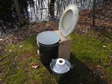 We are very happy with our system and find ourselves frequently preaching the gospel to others. When testing out a new (or very old) way of dealing with waste, I find it good to start experimenting on a small scale! With just a little effort the results come easily and may encourage a bigger commitment to Compost. Ours is a simple enough toilet that anyone who is handy can make. PDF plans are available explaining the construction with exact measurements for anyone who wants to be 100% confident of the end results. $5.00 US. All you'll need is the pail and the seat...