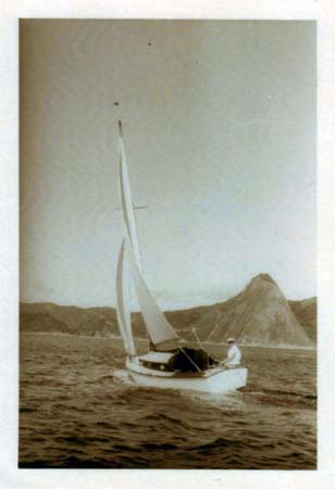 Maybe as a little bonus item, here’s a photo of Peter’s and my great-grandfather (Peter is one of his daughters’ grandson while I am one of his sons’ grandson) sailing his boat on the bay of Rio, probably taken in the first half of the 1930s. At least, that is what my grandmother used to say about this photo. This is the only shot I know of him in that boat, so unfortunately I know next to nothing about it. Looking at the shape visible in the picture, the hull could well be plywood construction – or at least it would yield itself to ply construction, while it probably is not.