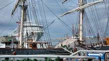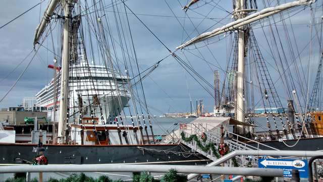 The day we were there, a huge cruise ship was docked nearby and it really dwarfed the Elissa. |