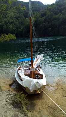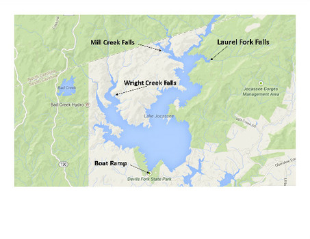 In July my family camped at Devil’s Fork State Park on Lake Jocasee in South Carolina. This state park offers the only public access to this 7,500 acre mountain lake situated 2 hours 30 minutes away from our house in Kennesaw. We brought some kayaks and did some exploring of the lake finding the clarity of the water incredible and enjoying its cool temperatures despite the 99 degree day. However, we were disappointed that the more mountainous parts of the lake, complete with beautiful waterfalls falling directly into the lake, were too far away to paddle to or even for the small electric trolling motor I had along. I vowed to make it back to the lake with my 14’ homebuilt sailboat for an overnight cruise.