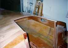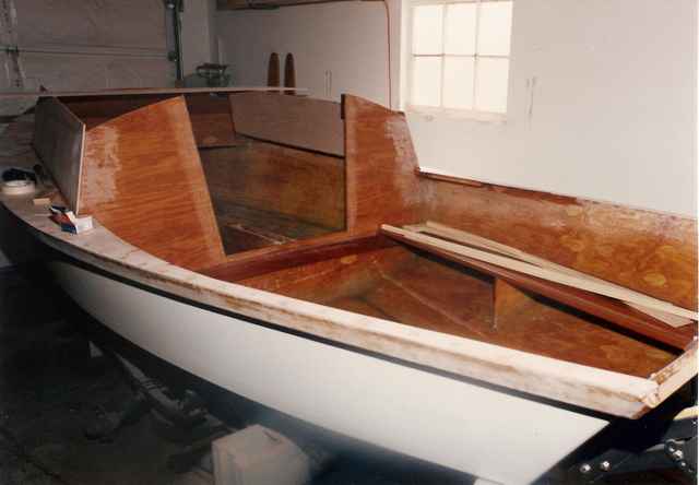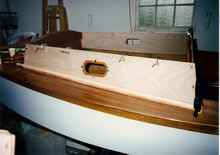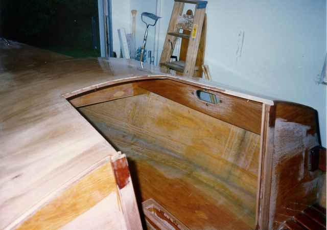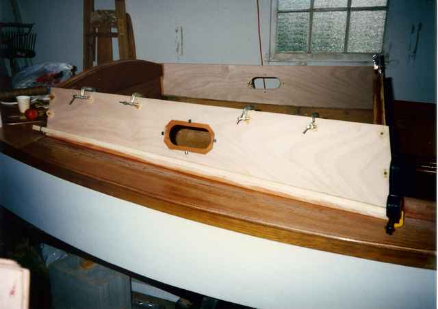 In 1999 I kept her in a slip at Boulder Marina on Carlyle Lake, IL, during the summer and fall. Apparently the heat, humidity and the way I had mounted a cockpit cover in the oarlock sockets caused the coamings to come loose near the center of the cockpit. So I re-epoxied the gaps and clamped the coamings neatly back into position, then added bronze screws there also. The rest of the boat is completely fastened with epoxy - no other screws except to mount hardware.