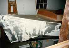 I had spent hundreds of hours taping and glassing over the previous ten years, but the realization of the enormity of this project came when the 50 yard roll of wide (9-inch?), heavy tape arrived. I just couldn't face all the hours I envisioned it would take to apply. Taping, glassing, fairing and finishing are probably the least fun parts of boatbuilding for me. Sawing, planing, and sanding are much more enjoyable. Anyway, the hull panels were given to a friend, and I was relieved to get over the big-boat phase of my life, having spent less than $1000 on it.