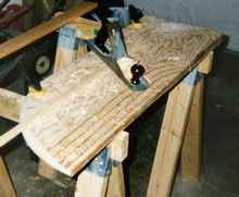 I bought some nice 16 foot 1x6 spruce boards to laminate the mast. Even this wood was no longer available locally in 2008, as I could only find white pine in 16 foot lengths for another project. |