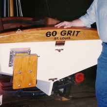 Hand and handiwork of the graphic-artist friend who made the lettering for the transom. |