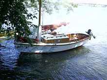 Originally the entire deck, cabin and cockpit were varnished, and the topsides and bottom painted white. This was easy, quick and looked good to non-boaters. In recent years I've spent more time when refinishing, sanding a lot more with 100, then 150 before varnishing, and 220 between coats. I've also painted the decks and cabintop, which does look better, and has more traction to walk on. I also painted the bottom to look more yacht-like.