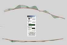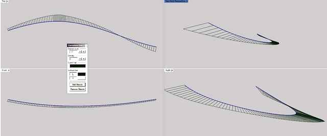 This is a picture of the chine in plan and profile view, created directly from the table of offsets but with some points corrected because of flagrant deviations. The curve graph shows how unfair the curve is without editing. We can create and fair the lines in 3D but there is a better method.