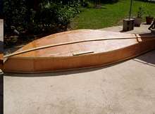 The sides and bottom are of Home Depot Lauan plywood. The stem is a 2 x 2. The transom is of heavy plywood. I was trying to keep the weight at a minimum plus I am very frugal and try to use what is available.