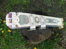 Starboard side leeboard, setting on deck, showing foil shape.