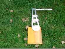 Rube Goldberg vice for mounting grommets high enough for cutting. Be sure to tell a loved one when you expect to begin using the vice, and when you expect to finish.