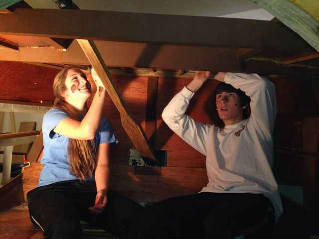 Daughter and her boyfriend helping to paint the Captain's cabin. |