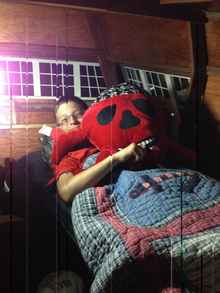 Youngest son sleeping aboard in one of the stern cabin bunks. |