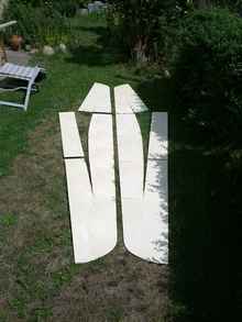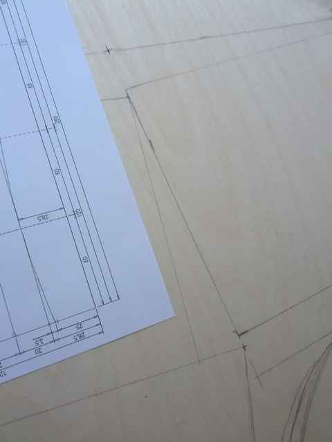 I had also been considering to try out Flo-Mo's "Flywood" one-sheet canoe with its intriguing and beautiful design. The store did have a sheet of 4mm ply, so that decision was taken for me = the canoe it was as my first project. I still purchased the two sheets of 6mm just in case, to make sure that I will continue and also do the Robote. I should probably remark at this point that the finished forms for Robote have been sitting in my basement for two years, and the oars have been in "almost-finished" shape for nearly a year now. I have also built cardboard scale models of both the Robote and the Flywood canoe. Still, I had those three days (well actually not three days, but a fixed "fully free" timeslot during three consecutive days) and wanted to make as much headway as possible on one boat, so here goes.