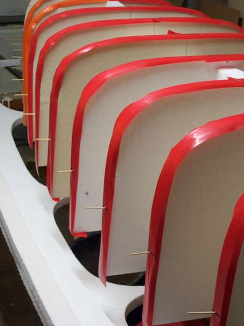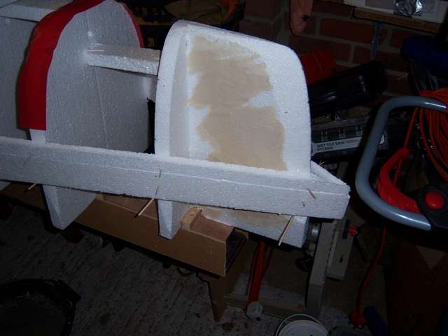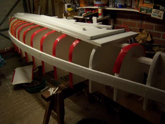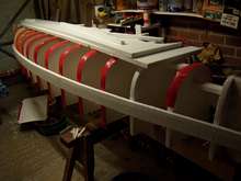 A set of 2 by 1 inch polystyrene gunnel strips were PVA'ed along the shear line.
