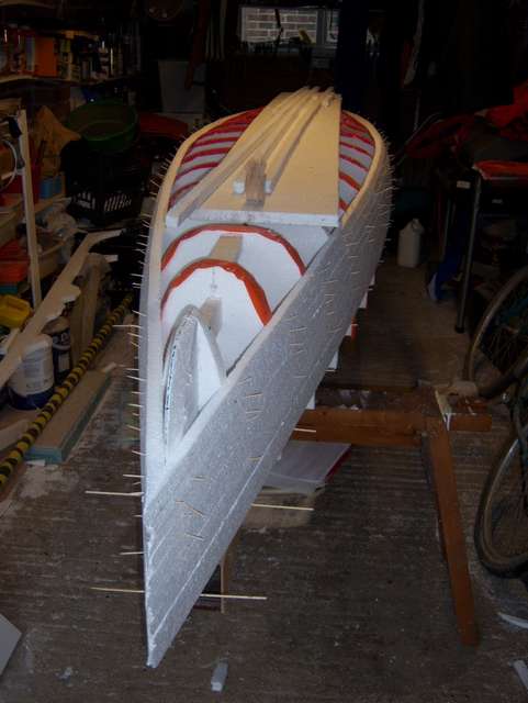 Internal and external gunnels rounded off and glass PVA'ed over them.