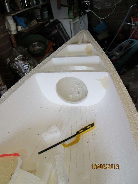 Access holes cut in the relevant stations to make storage compartments fore and aft.