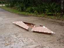 Okay maybe I can salvage this stealth kayak by looking to KEN SIMPSON of the famous PORTABLE BOAT PLANS OF ARIZONA. This is a Florida kayak but if I use part of this design for a front module and part for a back module and build a center module then I will have a very portable kayak in three modules.