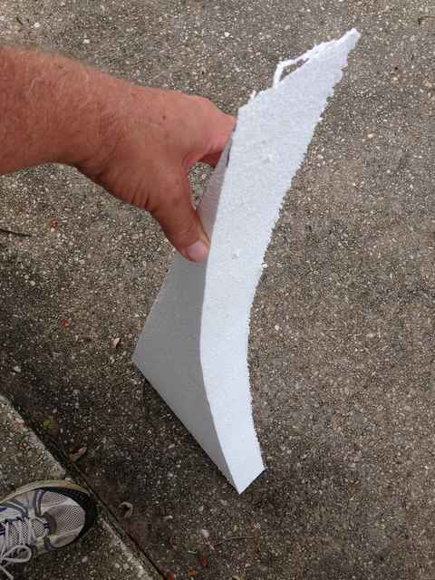 Fast forward a couple months after my last visit to the Tiki Hut, I visited Home Depot to buy some Styrofoam only to find out they no longer carry it (at least in my area). As I was asking about it at the Help-Desk a guy near me handed me a card and told me he could get me what I needed. Turns out he Owns a sign making business and they use a CNC Router to cut out pieces of styrofoam and then spray them with a polyurethane spray to harden them up to be durable enough to use as a sign. Anyway, he told me to let him know the dimensions and he would order a piece for me. He charged me $45 for a piece of "1-pound density" Styrofoam 12'X32"X3.5". I had chosen that size because I figured it would take that much to support my 240 pounds without being underwater. The foam blank weighed about 7.5 pounds.