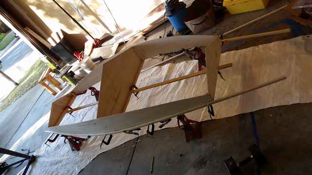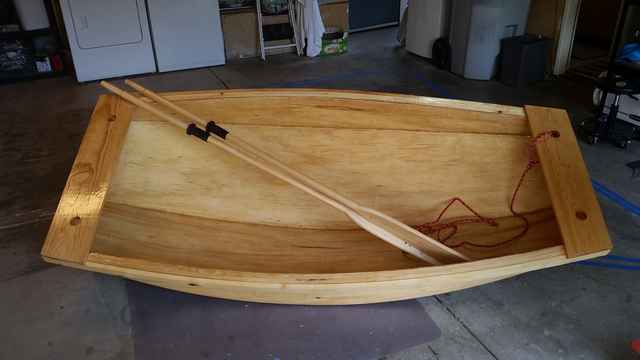 - The force of the gunnels pulling outwards on the sides, right at the ends of the hull, pulled the outer layer of ply away from the core. I only noticed when I was varnishing. I pumped as much thickened epoxy into the gaps as I could, and assume its fine.