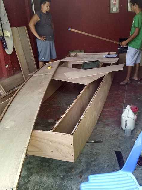 Philippines - helping Roy Espiritu and Joaquin Casal put together 3 geese. They will be raced on Lake Ta'al, the one with the live volcano, and for teaching. Hoping to establish a standard dinghy class that all can afford.