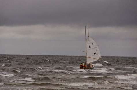Here is one from Christophe Matson on Sea Pearl sailing and he flies the Duckworks Burgee.