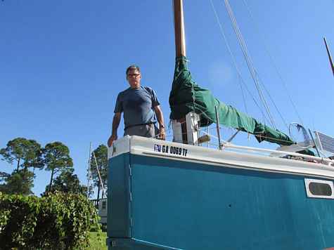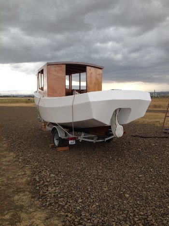 This is the latest boat by Bob Trygg and his wonderful wife Virgene who many of you know as one of the most superb boat builders ever. And prolific, about a boat a year. But this one is really special. Bob had a massive stroke a couple of years ago that many would simply have given up and never recovered from. When he and Virgene pulled into last year's Sail Oklahoma I rejoiced. But this boat made my heart sing with joy. A John Marple design, the name says it all. Bob didn't think he could build another boat but Virgene said no, let's try again, I will help you. And here she is, Tri-Again. This is a salute to two beautiful people and a beautiful boat and a love that keeps going.