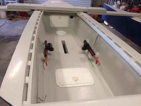 Open cockpit with pedal steering and daggerboard trunk.