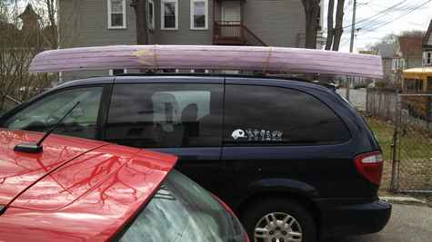 After a weeks delay in the launch due to having to replace the house drain pipes all the way to the sewer line (rotten cast iron), I got to test float Sawfish, my new foam kayak. The idea was inspired by my experimental foam mouseboat Seafoam (launched last spring) and Dave Lucas. The uncoated foam hull is 29" wide at the widest, 27" at the bottom and twelve feet long. I built it wide for kids and my parents (who will be getting this one and the next one). They care more about stability and ease of car topping, than speed, so shorter and wide was the target.