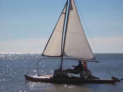 This the catamaran that I built. Starts with two kayaks and ends with a catamaran. I built everything and made the sails.