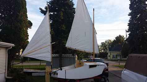 Ooze Goose completed smile emoticon I sail tomorrow flying a 76 foot lug borrowed from my Mayfly 14 (in picture behind boat). Hoping it works out!