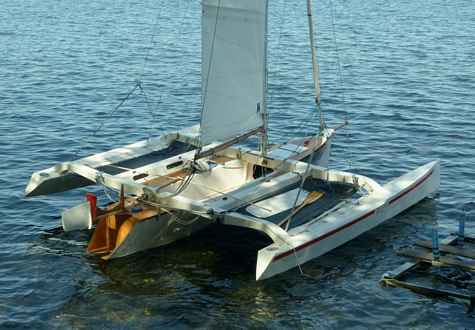 The increasingly popular W17 trimaran has now exceeded 100 in plan sales and the fleet continues to grow world wide. The first boat has already cruised over 800 nmls in the China Sea and in experienced hands, proving to be very capable. This is a great looking all-plywood boat that not only performs well, but is dry, comfortable and versatile. The boat has a bunch of unique features, not the least of which is a free wing mast design and a special ama design that, in practice, is proving to negate virtually all leeway!